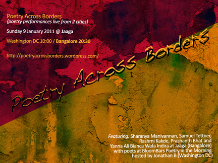 And on Sunday the 9th, I will read at Poetry Across Borders at Jaaga. Please do come.